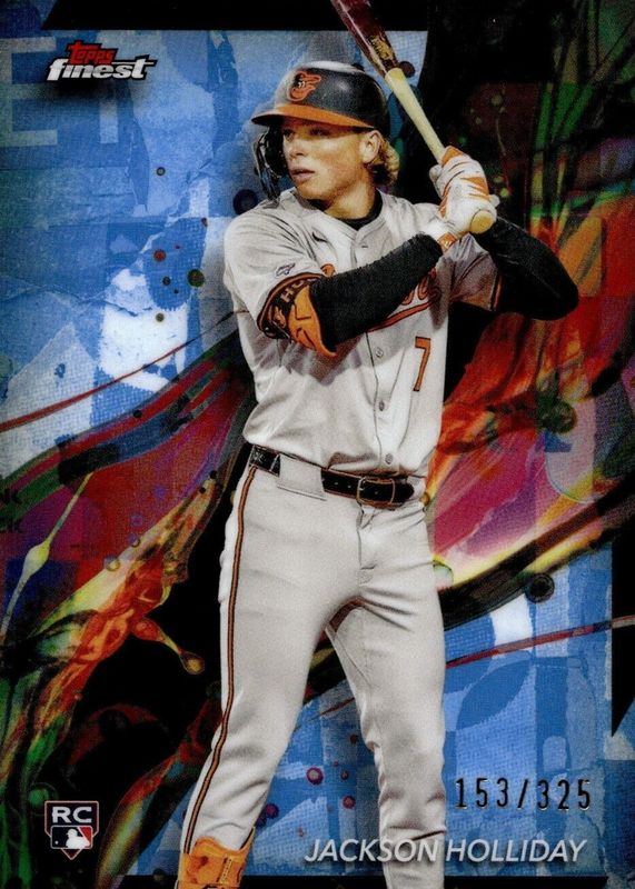The Jackson Holliday 2024 Topps Finest #76 Common - Sky Blue Refractor /325 Rookie card in Raw condition has not changed in price in the last 30 days and was last sold for $9.99 .