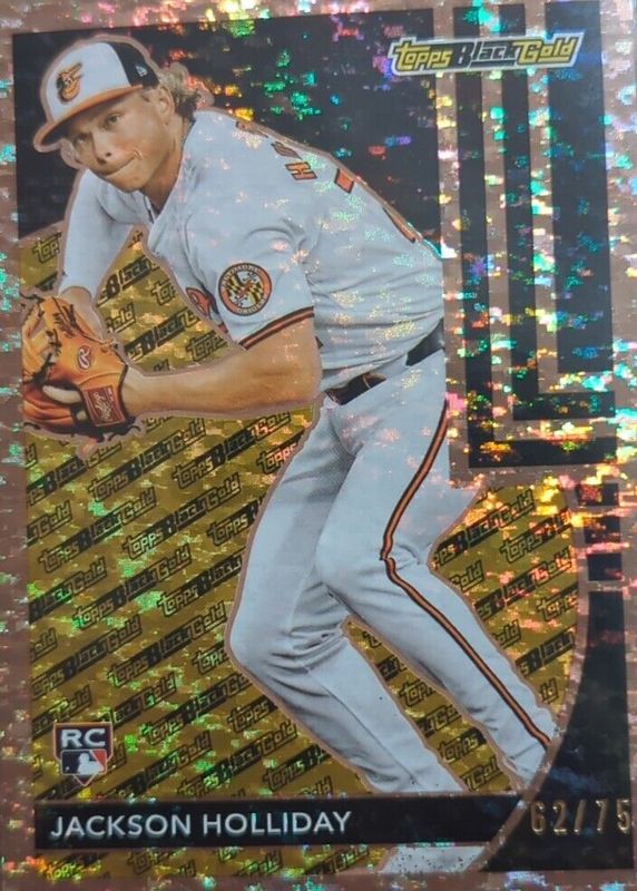 The Jackson Holliday 2024 Topps Update #BG-24 Topps Black Gold - Gold /75 Rookie card in Raw condition has not changed in price in the last 30 days and was last sold for $64.00 .