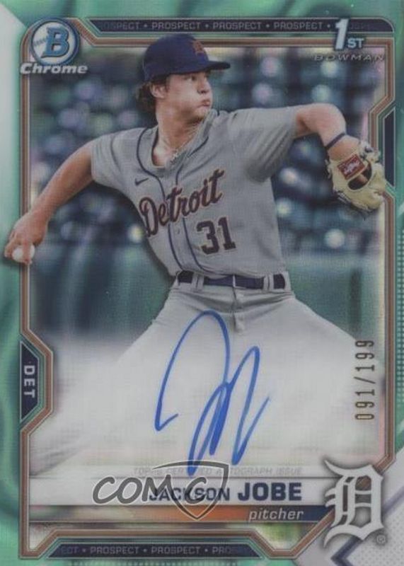 2021 Bowman Chrome 1st- Jackson Jobe- Aqua Lava Auto /199 Detroit Tigers