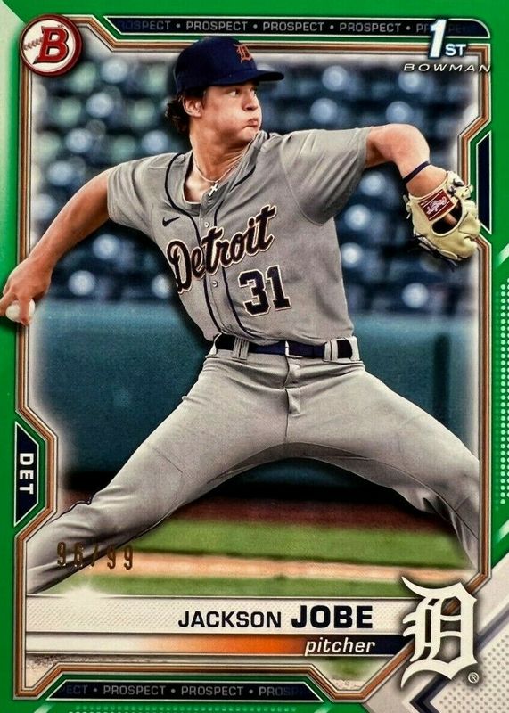 2021 Bowman Draft Jackson Jobe 1st Green Parallel /99 #BD-69 TIGERS