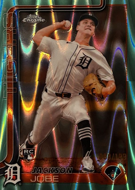 This card is 1 of 117 Jackson Jobe's card variations in the 2025 Topps Chrome set being tracked by Sports Card Investor, including Base, Geometric Refractor, Image Variation, Lightboard Logo Variation, and Negative Refractor.