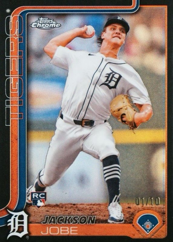 This card is 1 of 117 Jackson Jobe's card variations in the 2025 Topps Chrome set being tracked by Sports Card Investor, including Base, Geometric Refractor, Image Variation, Lightboard Logo Variation, and Negative Refractor.