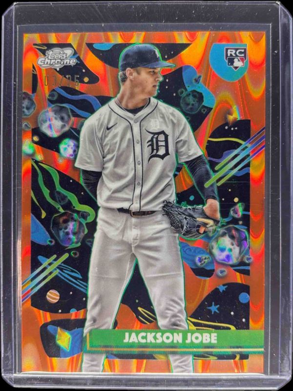 Auctions Ending Soon for Jackson Jobe 2025 Topps Chrome Cosmic #142 Orange Galactic Refractor /25 Rookie RAW