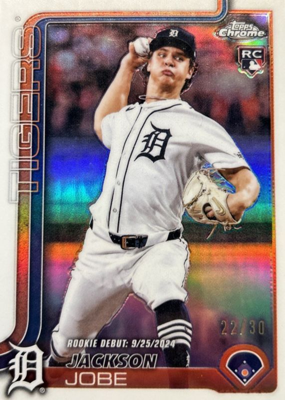 This card is 1 of 128 Jackson Jobe's card variations in the 2025 Topps Chrome Update set being tracked by Sports Card Investor, including Base, Image Variation, Rookie Debut, Geometric Refractor, and Negative Refractor.