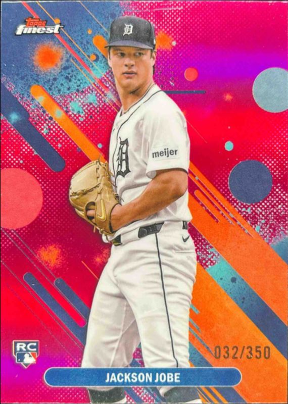The Jackson Jobe 2025 Topps Finest #35 Base Common - Magenta Refractor /350 Rookie card is 1 of 160 Jackson Jobe's card variations in the 2025 Topps Finest set being tracked by Sports Card Investor, including Common, Rare, Uncommon, Common - Checkerboard Refractor, and Common - Refractor.