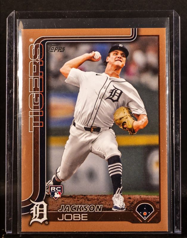 The Jackson Jobe 2025 Topps #490 Gold /2025 Rookie card is 1 of 172 Jackson Jobe's card variations in the 2025 Topps set being tracked by Sports Card Investor, including Base, Aqua Holo Foil, Diamante Foil, Holo Foil, and Pink Diamante Foil.