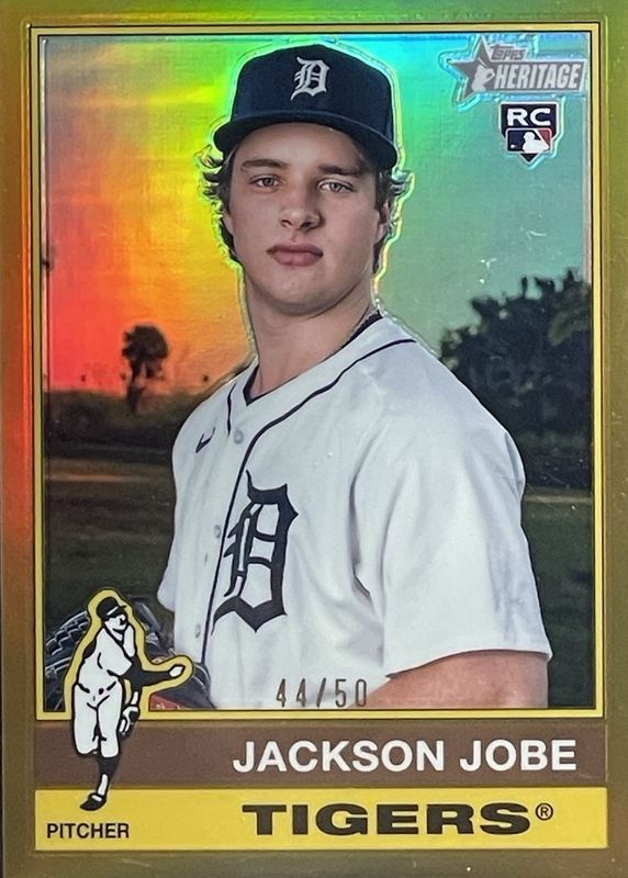 2025 Topps Heritage #389 Jackson Jobe RC Gold Chrome Refractor d. 44/50 Tigers