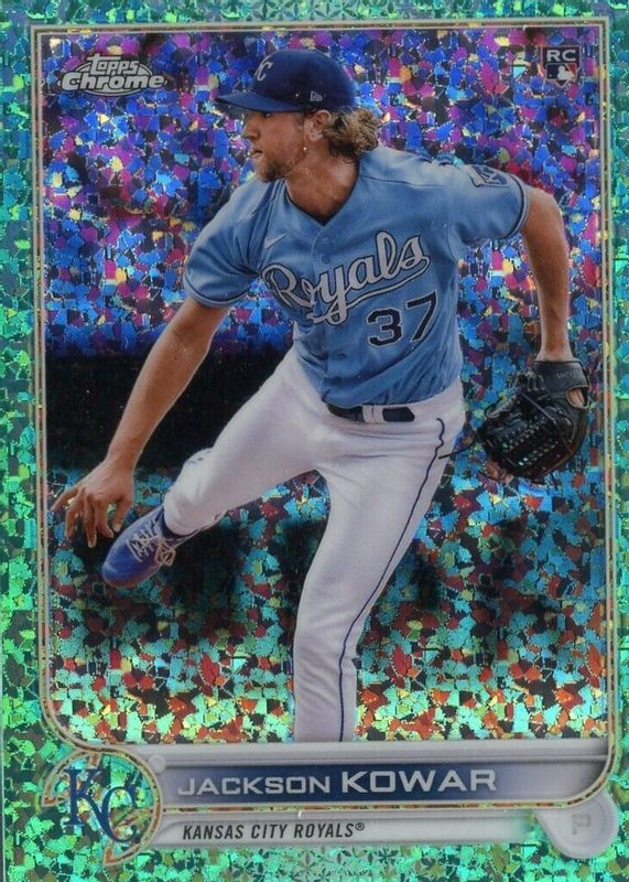 Jackson Kowar's Baseball cards are available in at least 16 sets. Jackson Kowar's biggest 7-day price movers are 2022 Topps Chrome #188 Aqua Mini-Diamond Refractor /199, 2022 Topps Chrome Logofractor Edition #105 Green /99, and 2022 Topps Chrome #RA-JK Rookie Auto - Superfractor /1.
