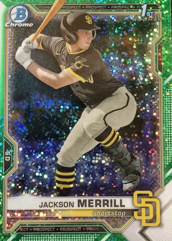 Jackson Merrill 2021 Bowman Draft #BDC-119 Chrome - Green Sparkle Refractor /99 (1st) RAW Price Guide