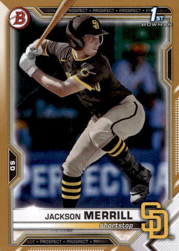 2021 Bowman Draft #BD-119 Jackson Merrill 1st Prospect Gold Paper Base 31/50 SJ