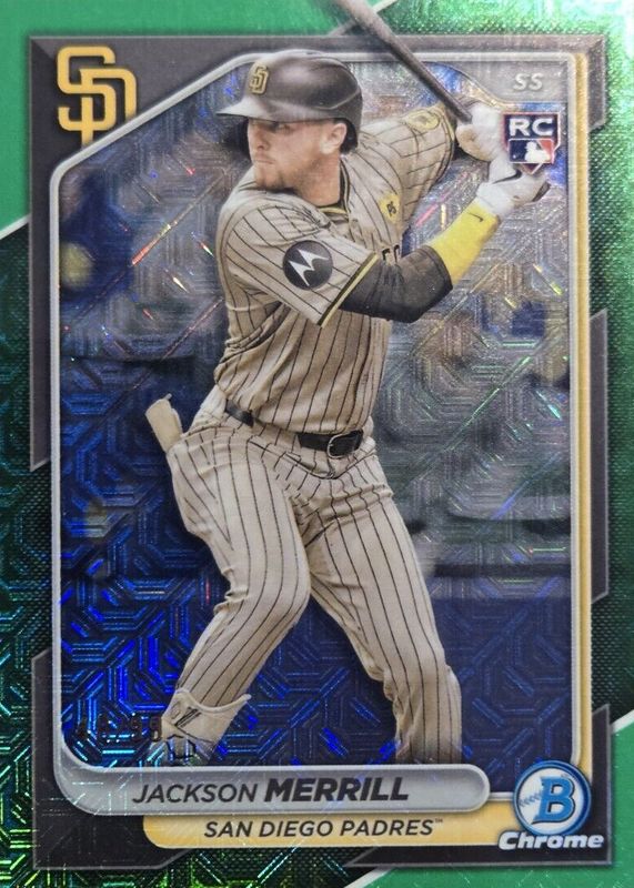 Best Prices Available For Sale of Jackson Merrill 2024 Bowman Chrome Mega Box #27 Green Mojo Refractor /99