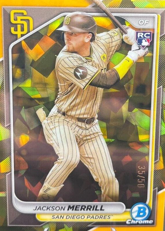 JACKSON MERRILL 2024 BOWMAN CHROME #27 ROOKIE SAPPHIRE GOLD REFRACTOR 25/50 RC