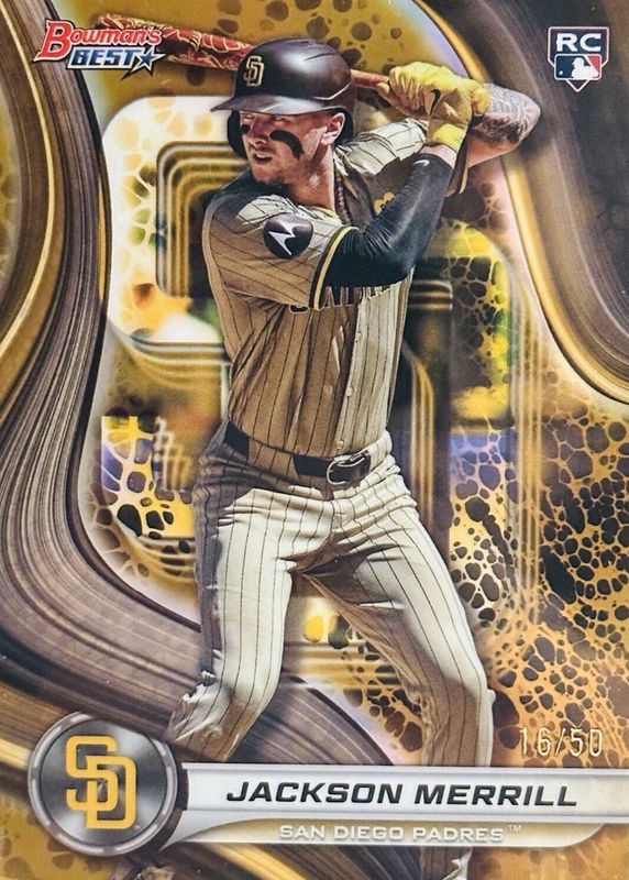 JACKSON MERRILL ROOKIE 2024 BOWMAN'S BEST BASEBALL GOLD /50 SAN DIEGO PADRES #56