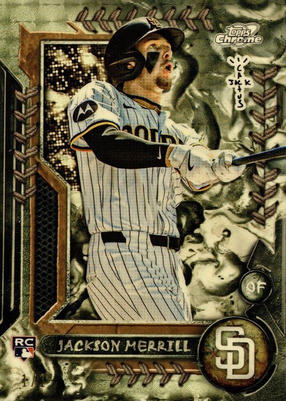 This card is 1 of 5 Jackson Merrill's card variations in the 2024 Topps Chrome Cosmic x Cactus Jack set being tracked by Sports Card Investor, including Base, Orange Refractor /25, Black Refractor /10, and Red Refractor /5.