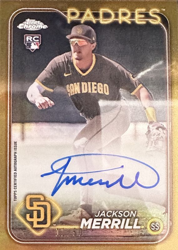 2024 Topps Chrome #RA-JME Jackson Merrill RC On-Card Gold Refractor Auto /50