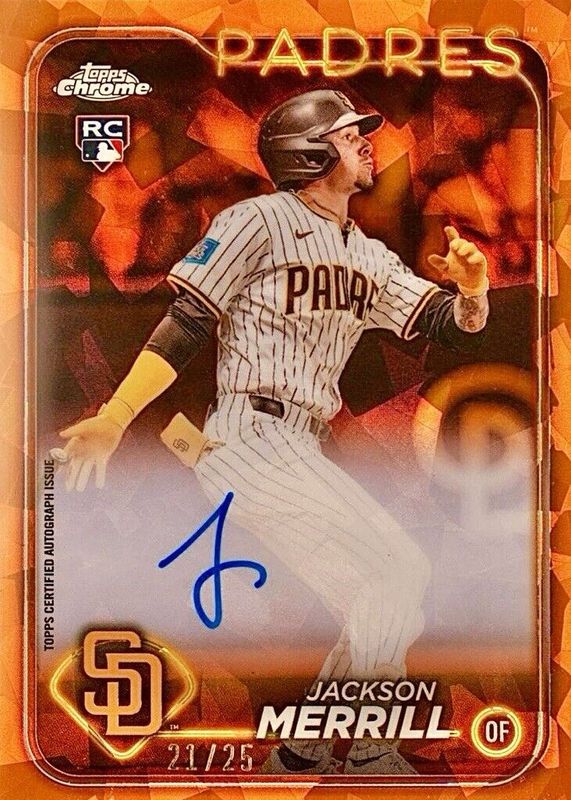 Jackson Merrill 2024 Topps Chrome Sapphire Edition #CSA-JME Autographs - Orange /25 Rookie RAW Price Guide