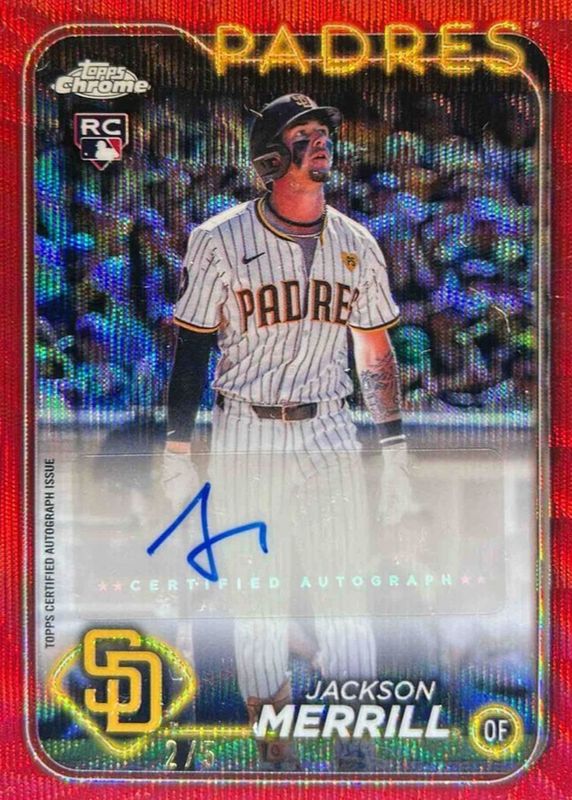 Auctions Ending Soon for Jackson Merrill 2024 Topps Chrome Update #AC-JM Autographs - Red Wave Refractor /5 Rookie RAW