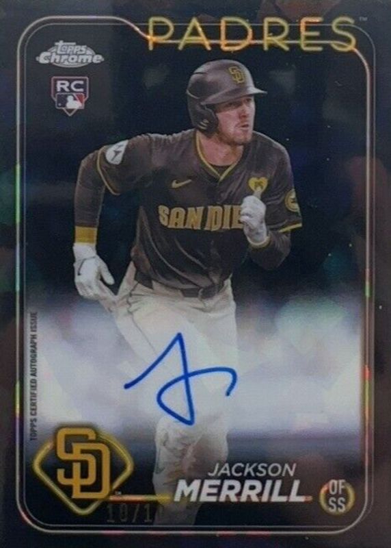 Jackson Merrill 2024 Topps Chrome Update Sapphire Edition #USA-JM Autographs - Black /10 Rookie RAW Price Guide