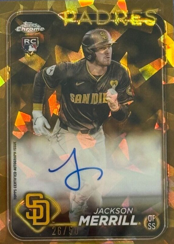 Best Prices Available For Sale of Jackson Merrill 2024 Topps Chrome Update Sapphire Edition #USA-JM Autographs - Gold /50