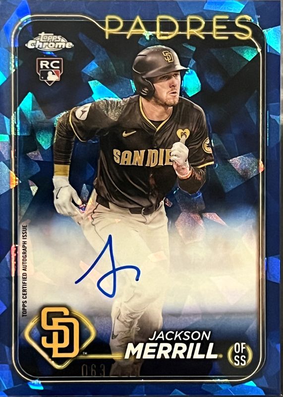JACKSON MERRILL 2024 TOPPS CHROME UPDATE SAPPHIRE ROOKIE REFRACTOR AUTO RC /199