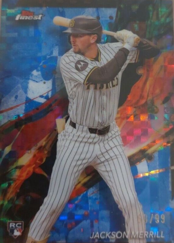 Best Prices Available For Sale of Jackson Merrill 2024 Topps Finest #96 Common - Blue Checkerboard Refractor /99