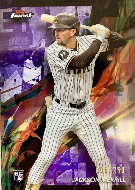 The Jackson Merrill 2024 Topps Finest #96 Common - Purple Refractor /250 Rookie card in Raw condition has not changed in price in the last 30 days and was last sold for $18.00 .