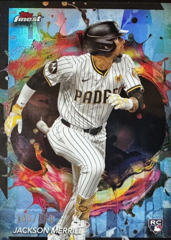 The Jackson Merrill 2024 Topps Finest #216 Rare - Sky Blue Refractor /150 Rookie card in Raw condition has not changed in price in the last 30 days and was last sold for $42.50 .