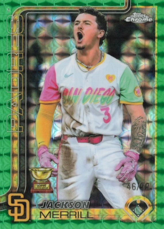 2025 Topps Chrome #61 Jackson Merrill Green Geometric Refractors /99
