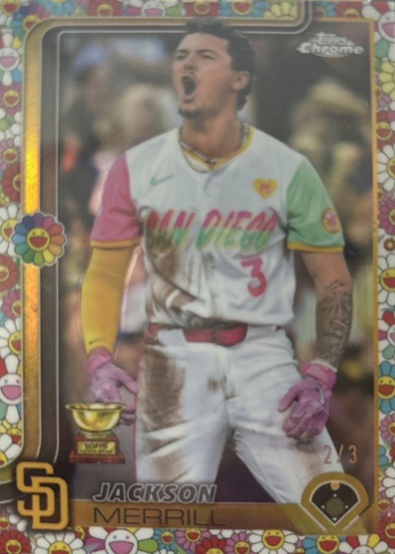The Jackson Merrill 2025 Topps Chrome #61 Murakami Variation /3 card in Raw condition has not changed in price in the last 30 days and was last sold for $250.00 .