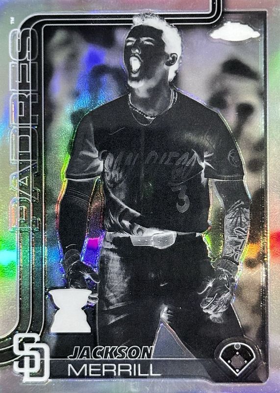 The Jackson Merrill 2025 Topps Chrome #61 Negative Refractor card in Raw condition has moved up $6.99 (+232%) in the last 30 days and was last sold for $10.00 .