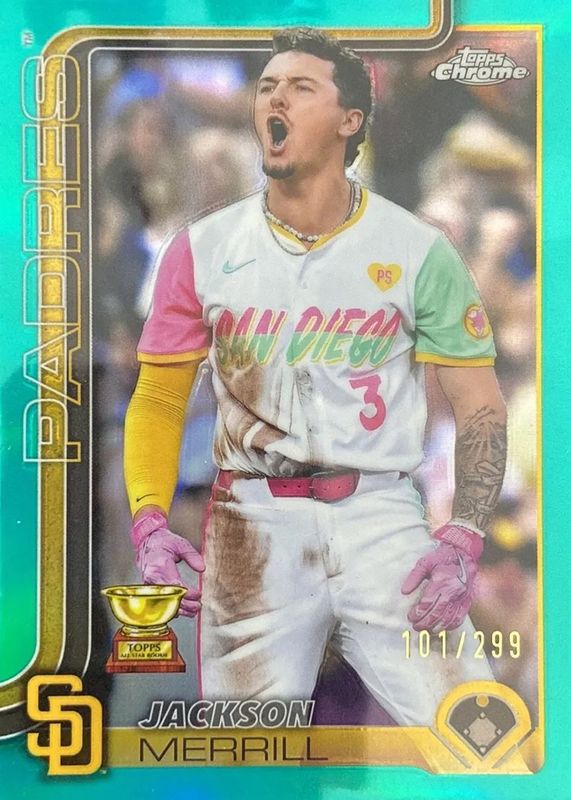 Jackson Merrill 2025 Topps Chrome Teal Refractors #61 /299 San Diego Padres