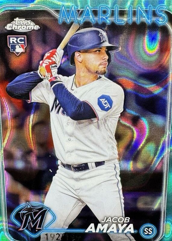 2024 TOPPS CHROME MLB AQUA REFRACTOR JACOB AMAYA RC 92/199 MIAMI MARLINS #92