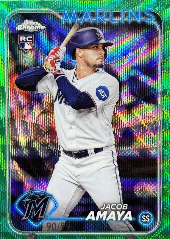 2024 Topps Chrome Baseball RC Green Wave Refractor /99 #92 Jacob Amaya Marlins