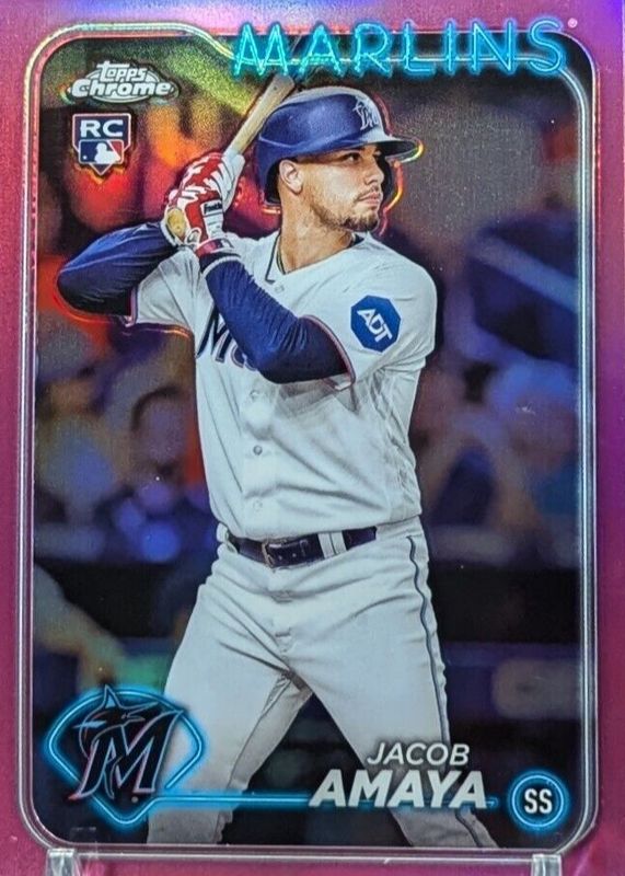 2024 Topps Chrome #92 Jacob Amaya Pink Refractor Rookie Parallel - Marlins