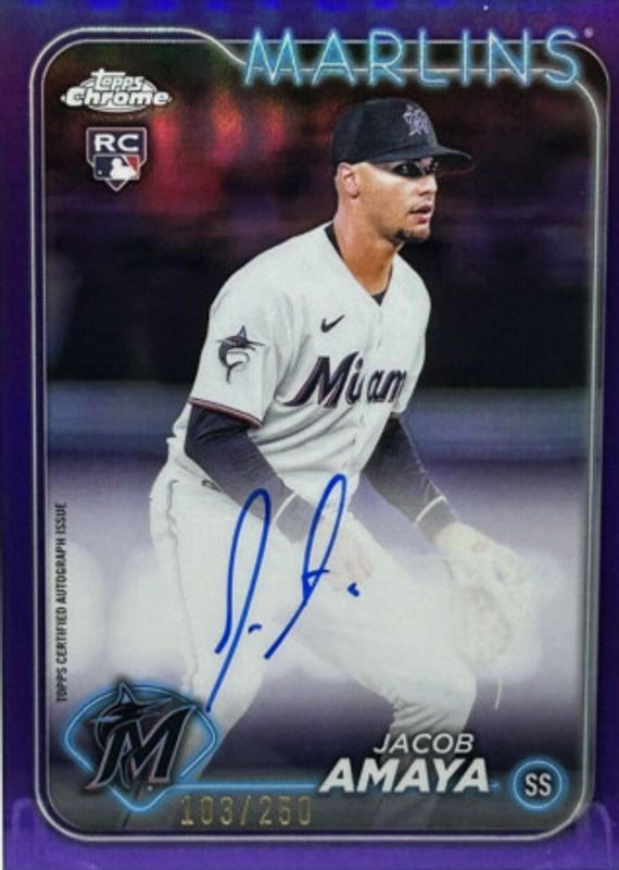 Jacob Amaya 2024 Topps Chrome Purple Refractor RC Auto /250 #RA-JAM Miami