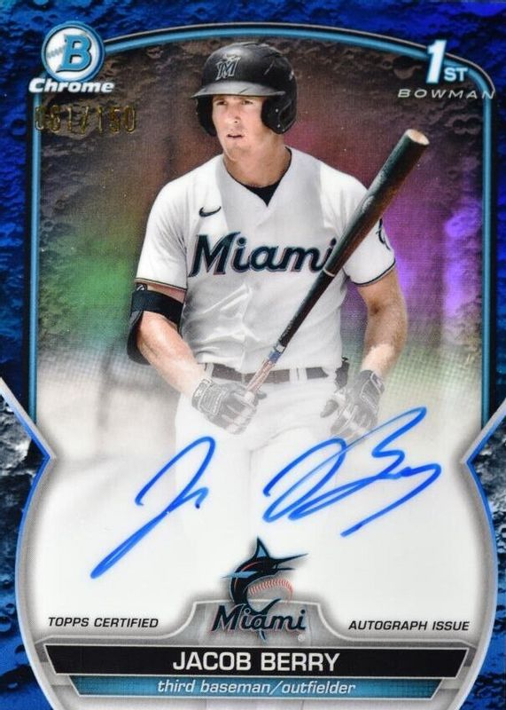 Jacob Berry 2023 Bowman Chrome Blue Lunar Refractor Auto /150 1st Prospect RC