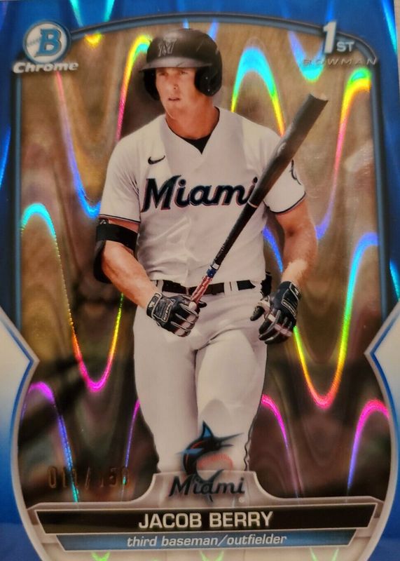 2023 Bowman Chrome Jacob Berry MARLINS #BCP-108 1st Blue Raywave Refractor /150