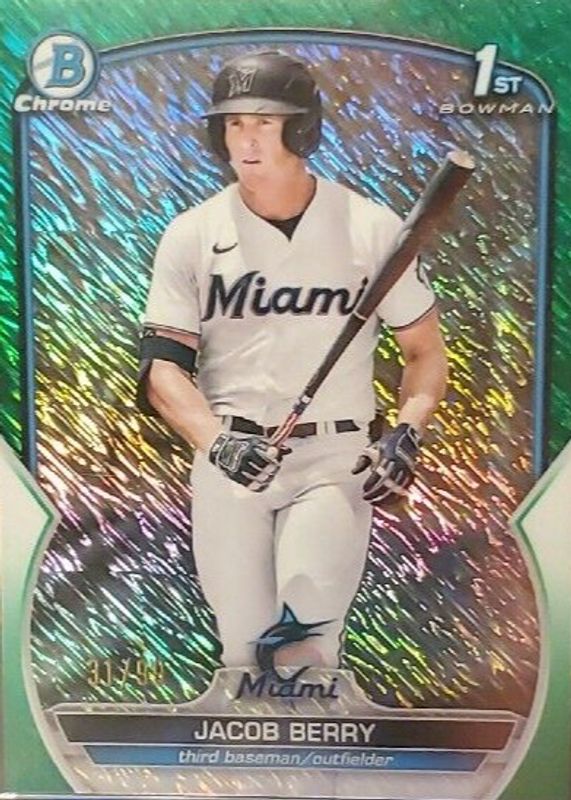 2023 Bowman Chrome Jacob Berry MARLINS #BCP-108 Green Shimmer Refractor /99