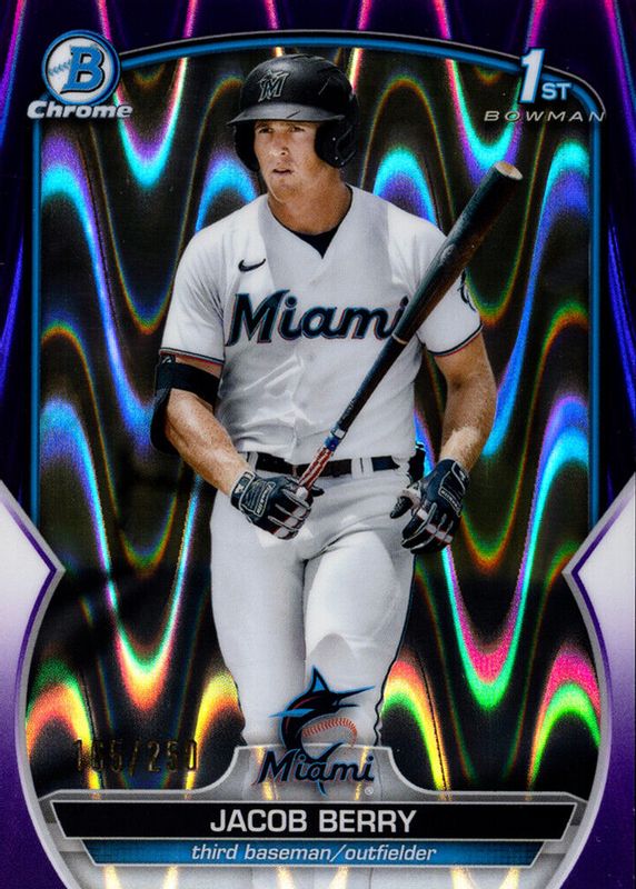 2023 Bowman Chrome Jacob Berry 1st Purple Raywave Refractor /250 BCP-108 Marlins