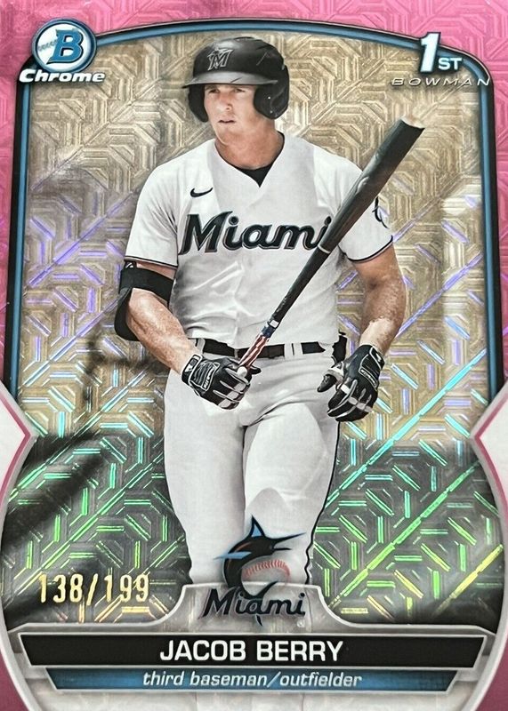 Jacob Berry 2023 Bowman Mega Box #BCP-108 Chrome Prospects - Pink Mojo Refractor /199 (1st) RAW Price Guide