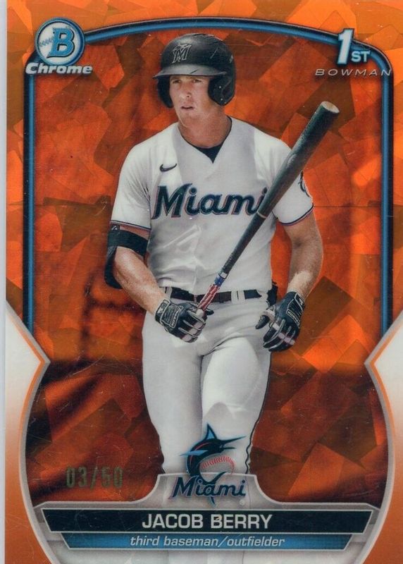Jacob Berry 2023 Bowman Sapphire Edition #BCP-108 Chrome Prospects - Orange /50 (1st) RAW Price Guide