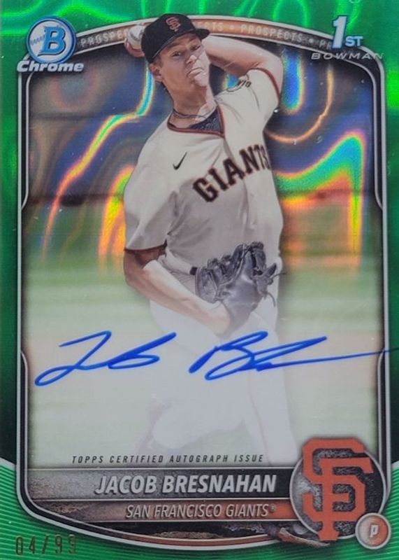 2025 Bowman Jacob Bresnahan Chrome Green Lava refractor 1st Auto 39/99 Giants
