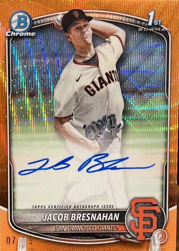 JACOB BRESNAHAN 2025 BOWMAN CHROME 1ST ORANGE WAVE REFRACTOR AUTO 25/25 Q4060