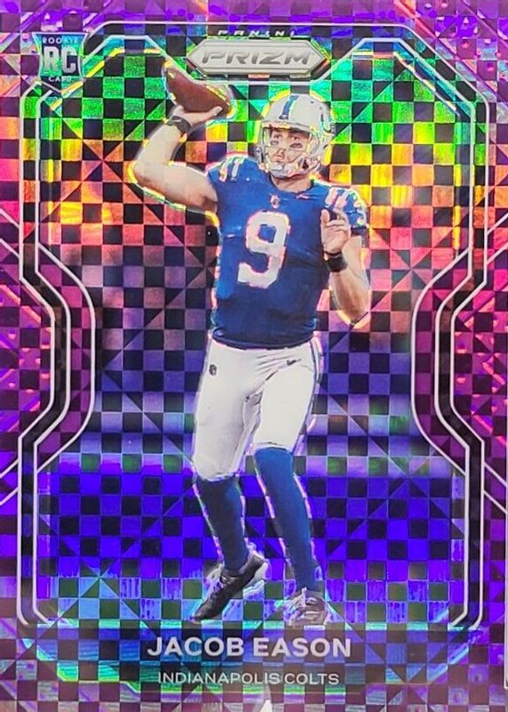 The Jacob Eason 2020 Prizm #331 Purple Power /49 Rookie card in Raw condition has not changed in price in the last 30 days and was last sold for $13.50 .