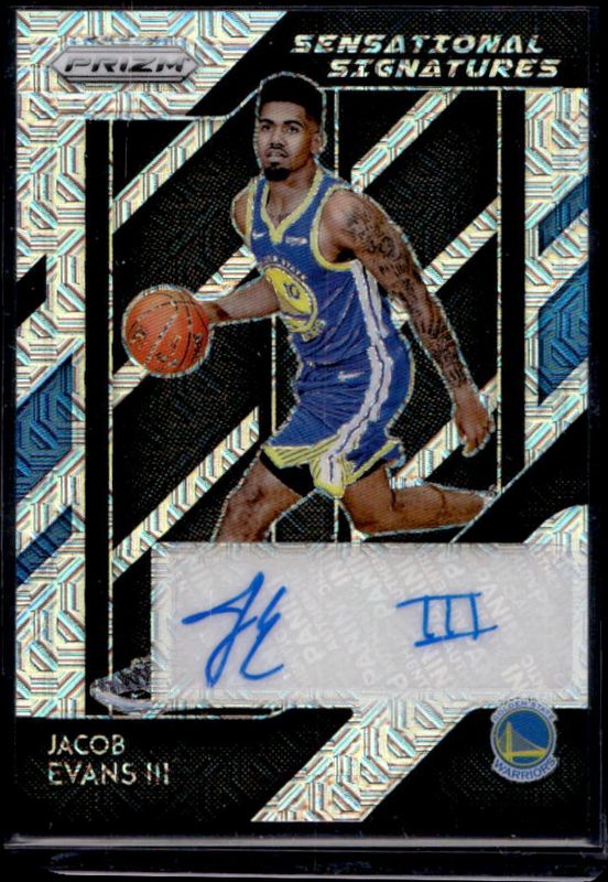 The Jacob Evans III 2018 Prizm #SS-JEV Sensational Signatures - Mojo /25 Rookie card is 1 of 46 Jacob Evans III's card variations in the 2018 Prizm set being tracked by Sports Card Investor, including Base, Choice Blue Yellow Green, Fast Break, Green, and Pink Ice.