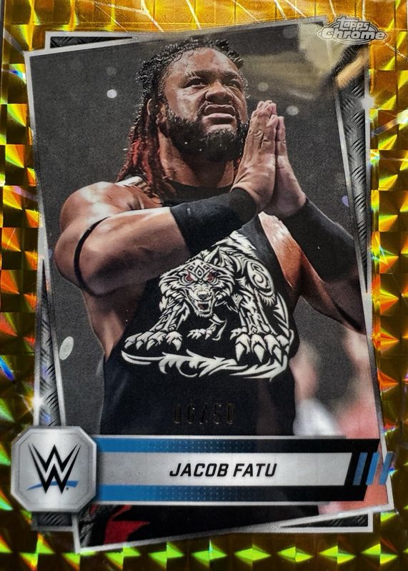 Jacob Fatu 2025 Topps Chrome WWE 38/50 Gold Geometric Refractor Rare Card #100