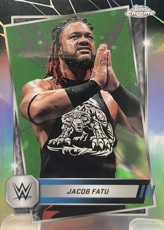 2025 TOPPS CHROME WWE JACOB FATU NEON GREEN AND BLACK REFRACTOR #100