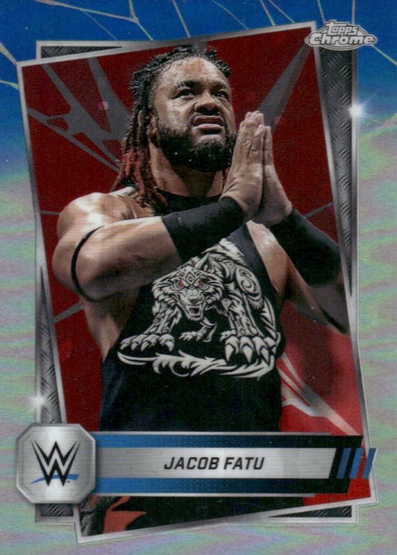 2025 Topps Chrome WWE Red and Blue Refractor Jacob Fatu #100