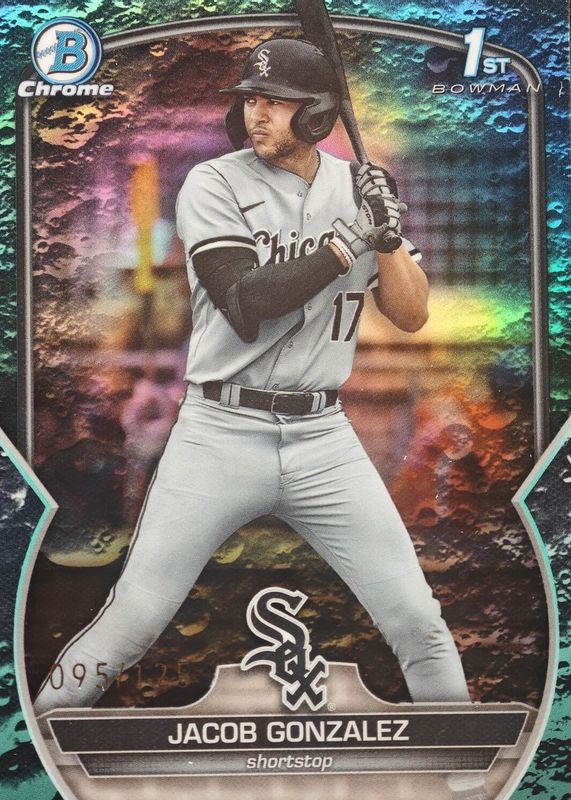 2023 Bowman Draft Jacob Gonzalez Chrome Aqua Lunar Crater Refractor 1st #68/125