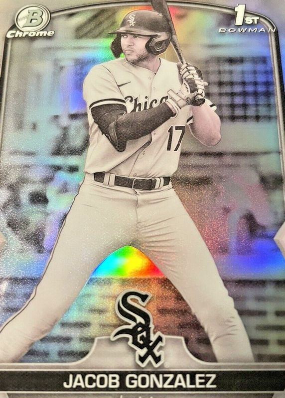 This card is 1 of 44 Jacob Gonzalez's card variations in the 2023 Bowman Draft set being tracked by Sports Card Investor, including Chrome (1st), Chrome - Japan Refractor (1st), Chrome - Lunar Glow Refractor (1st), Chrome - Refractor (1st), and Chrome - Sky Blue Refractor (1st).